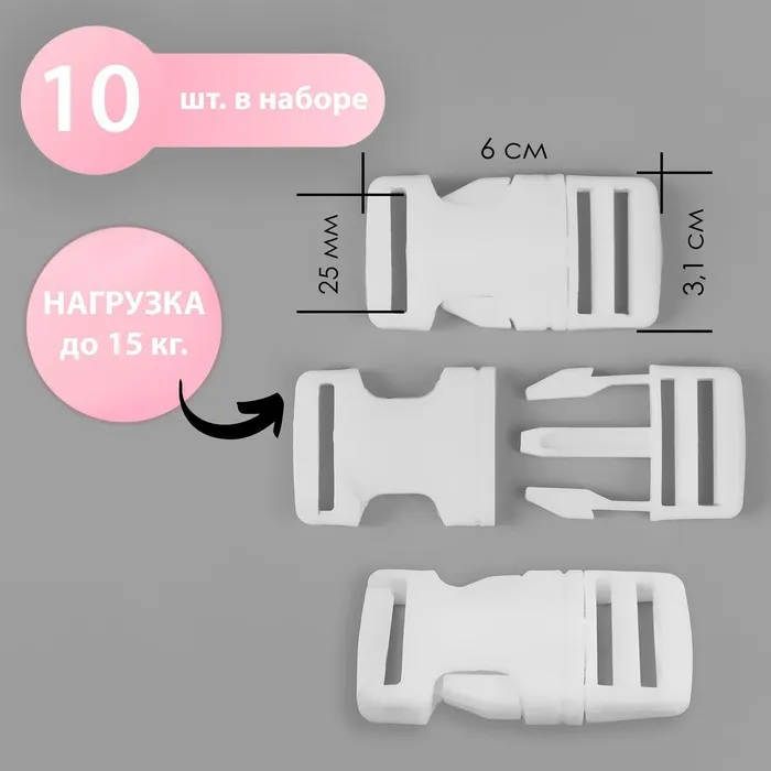 Фастексы изготовлены из прочного пластика, конструкция выдерживает нагрузку до 15 килограммов.
