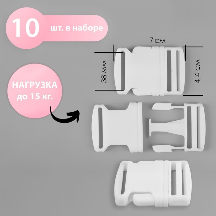Фастексы изготовлены из прочного пластика, конструкция выдерживает нагрузку до 15 килограммов.