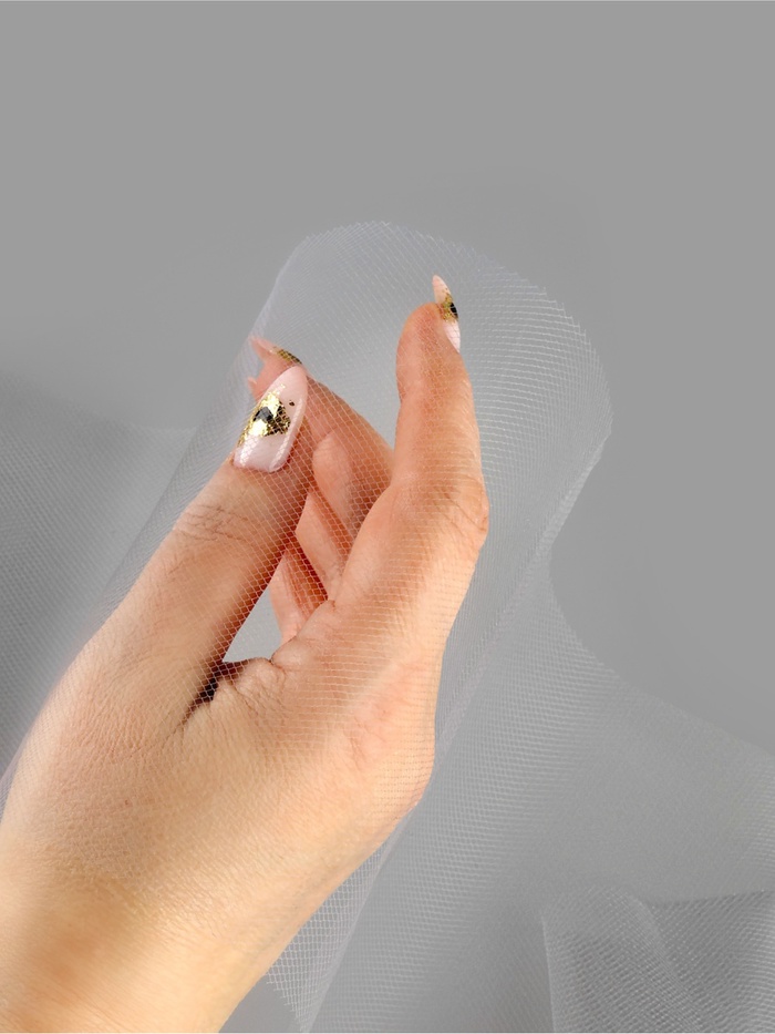 Фатин — это лёгкая, прозрачная и воздушная ткань, изготовленная из полиэстера. Может быть использован для создания вечерних нарядов, аксессуаров для волос, декоративных подушек или других элементов интерьера.