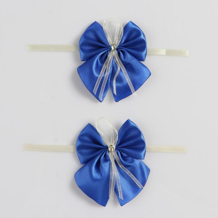 Бант-бабочка свадебный для декора, атласный, 2 шт., синий