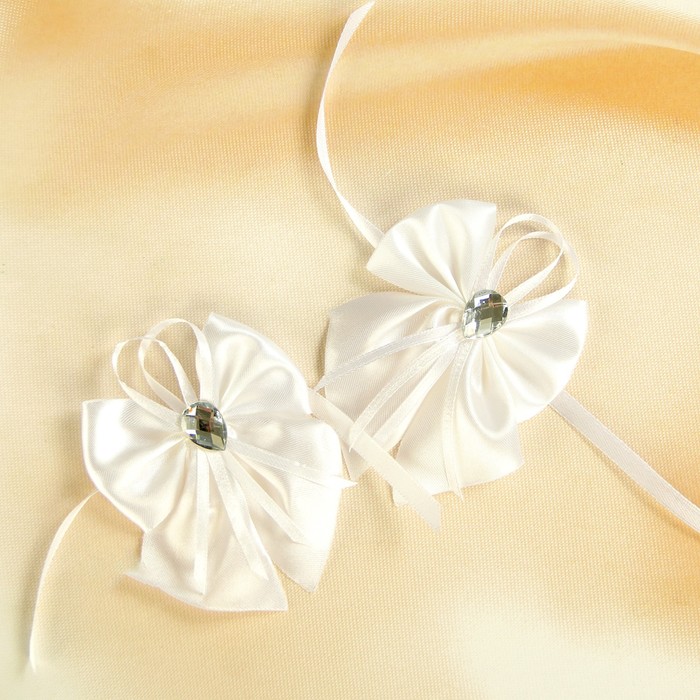Бант-бабочка свадебный для декора, атласный, 2 шт., белый, МИКС