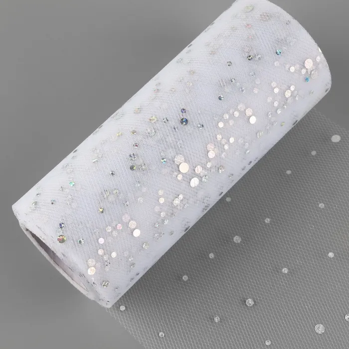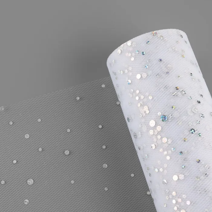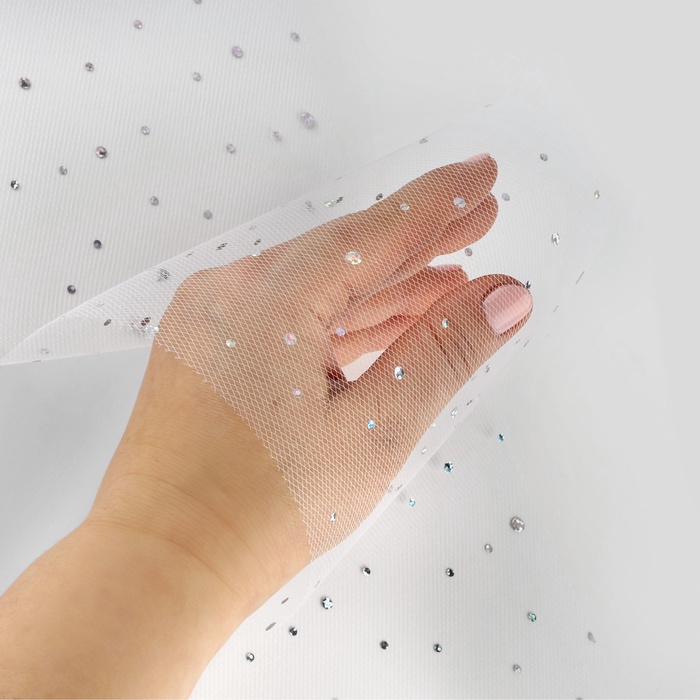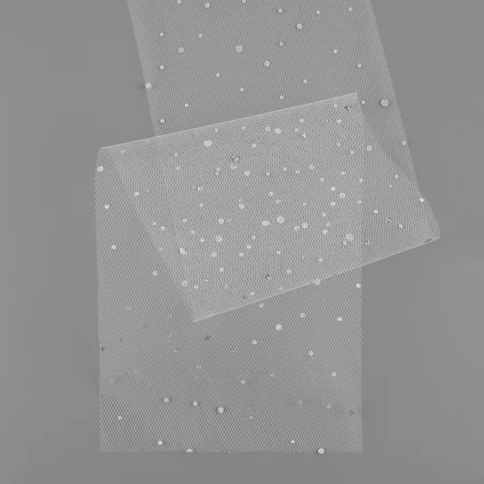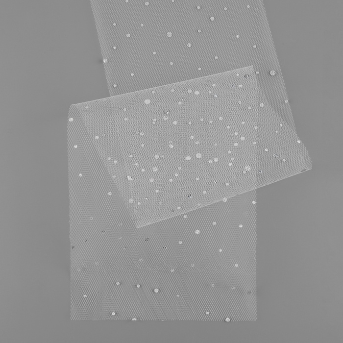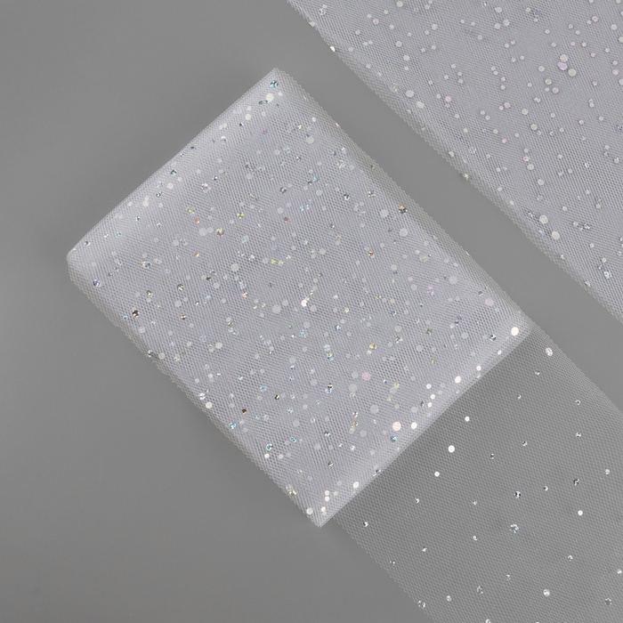 Фатин с блёстками, 15 см, 23±1 м, 11±1 г/м², белый №1 — Характеристики
