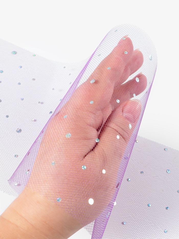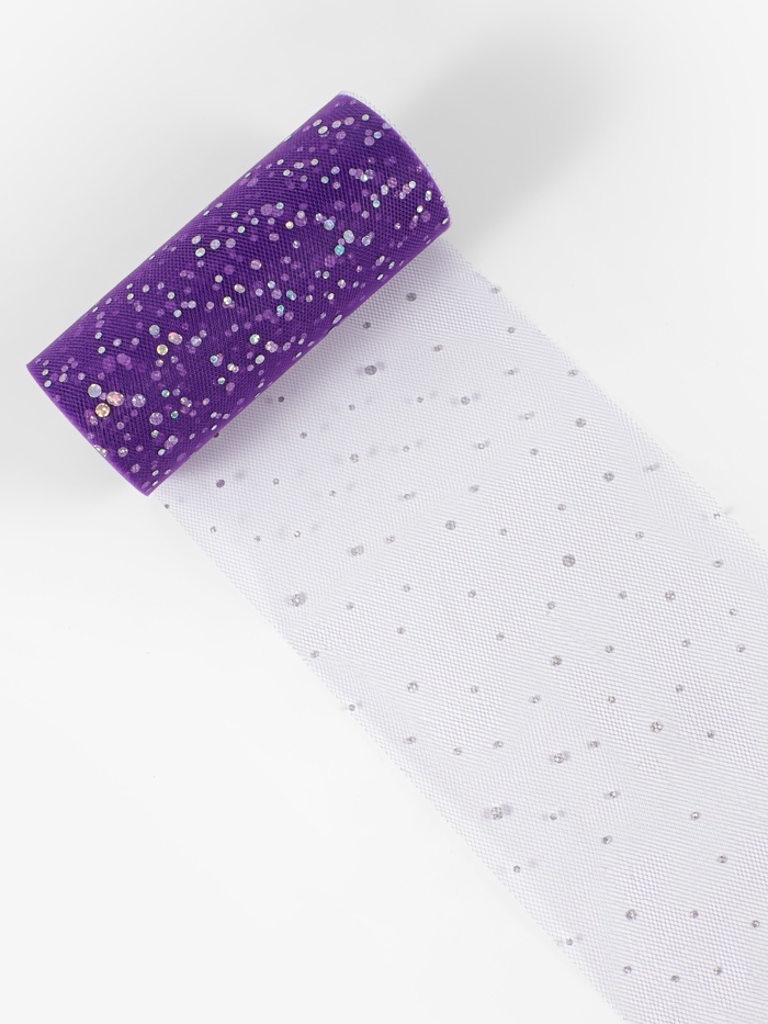 Элегантный фиолетовый фатин с блёстками — идеальный выбор для создания поразительных декоративных элементов и праздничных нарядов. Ширина материала 15 см с длиной 23 метра и плотностью 11 г/м² делает его универсальным для всевозможных проектов, от изготовления аксессуаров до украшения интерьеров.