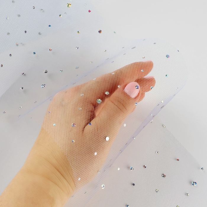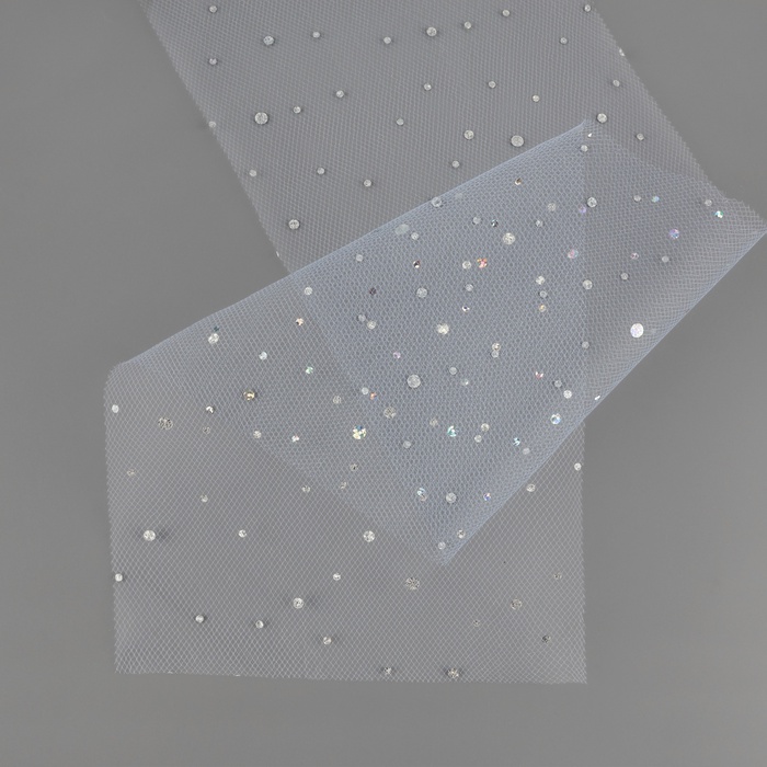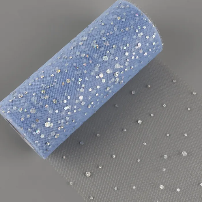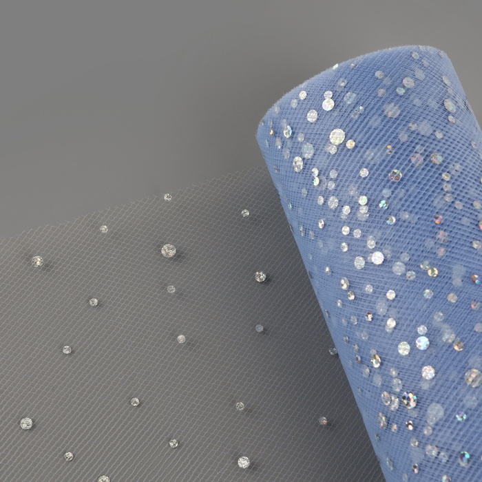 Фатин с блёстками, 15 см, 23±1 м, 11±1 г/м², голубой №21 — Характеристики