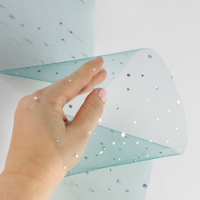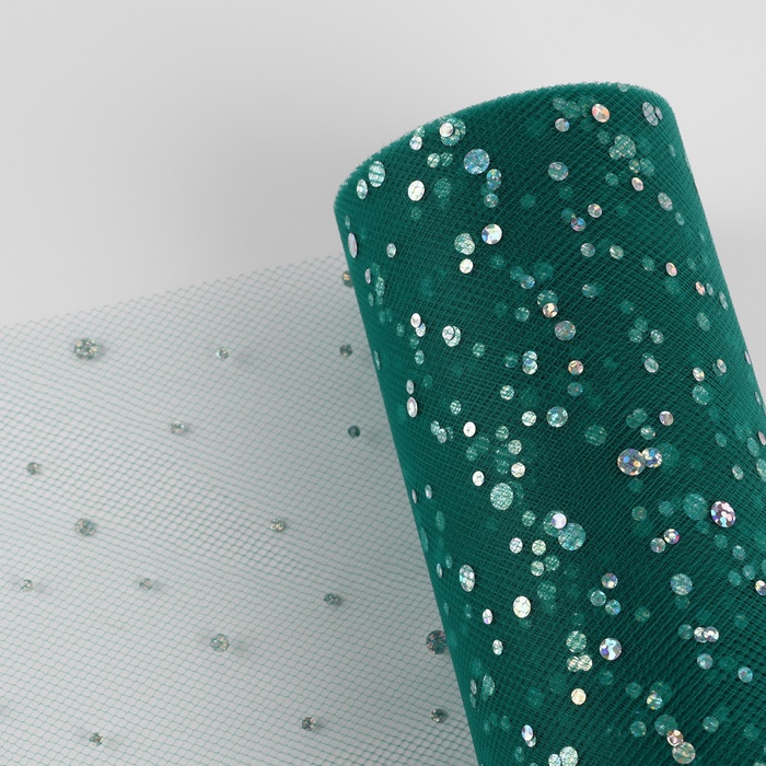 Фатин с блёстками, 15 см, 23 ±1 м, 11 ±1 г/м², цвет тёмно-зелёный №59 — Характеристики