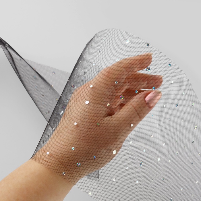 Фатин с блёстками, 15 см, 23±1 м, чёрный №21 — Характеристики