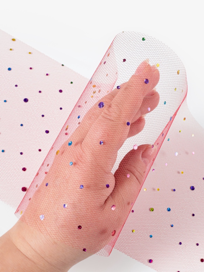Фатин с разноцветными блёстками, 15 см, 23 ± 1 м, 11 ± 1 г/м², цвет красный №17 — Характеристики