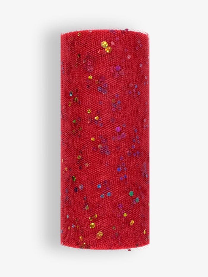 Фатин с разноцветными блёстками, 15 см, 23 ± 1 м, 11 ± 1 г/м², цвет красный №17