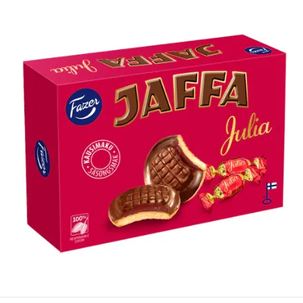 Погрузитесь в мир вкуса с печеньем Fazer Jaffa! Это не просто десерт, а настоящее искусство кулинарии, которое дарит удовольствие с первого укуса. Каждый кусочек бисквитного печенья пропитан нежным цитрусовым вкусом, который освежает и радует.