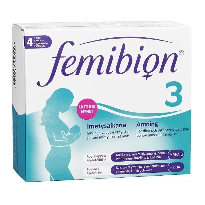 Femibion 3 разработан для поддержки женщин в период грудного вскармливания. Комплекс содержит тщательно подобранные витамины, минералы и жирные кислоты, включая DHA, фолаты, витамин D, железо, кальций, холин, лютеин и другие важные микроэлементы. Поддерживает общее самочувствие матери и способствует нормальному развитию мозга и зрения младенца.