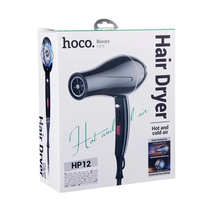 Фен для волос Hoco HP12, 6 режимов, 2 насадки, чёрный — Характеристики