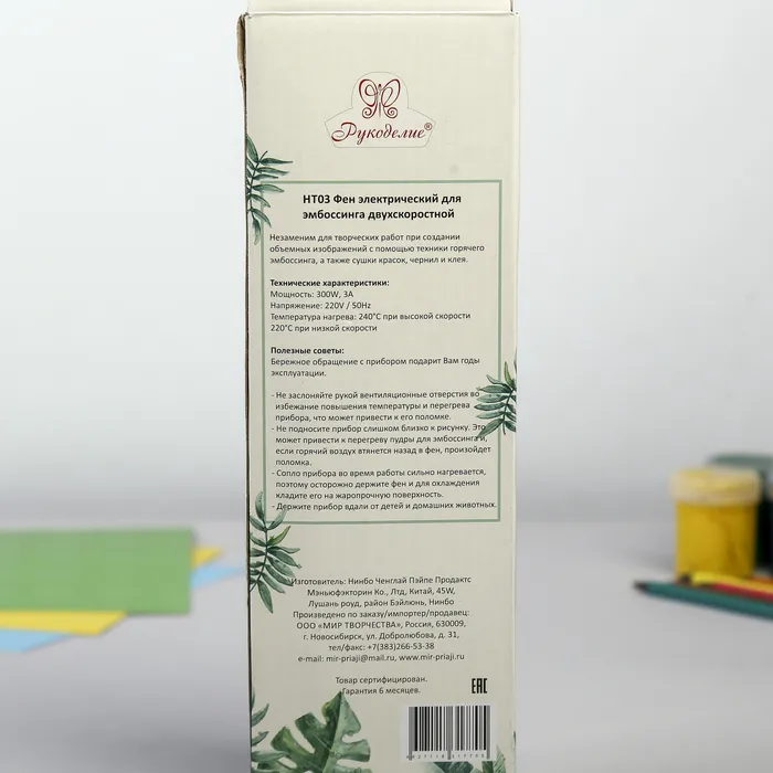 Фен электрический для эмбоссинга "Рукоделие" двухскоростной — Характеристики