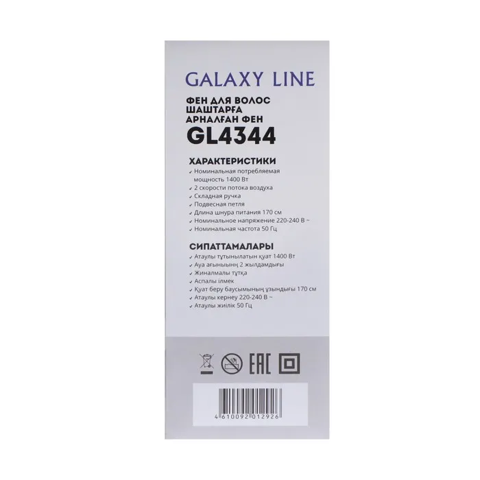 Стильный компактный фен GALAXY LINE GL4344 - незаменимый прибор для дома и поездок.
