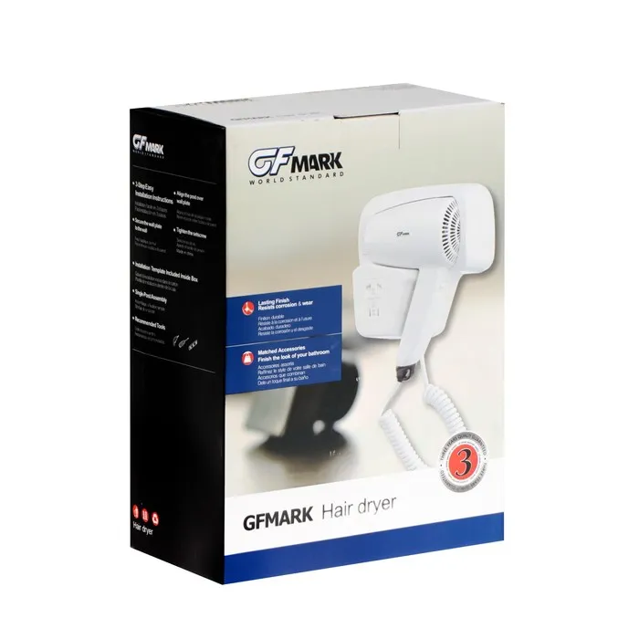 Два температурных режима и функция холодного воздуха позволят вам подобрать идеальные условия для сушки и укладки, обеспечивая необходимую защиту для ваших волос. Устройство не перегревается, так как оно оснащено системой защиты от перегрева. К тому же, фен легко монтируется на стену, что экономит место и идеально подходит для использования в ванных комнатах или салонах красоты.