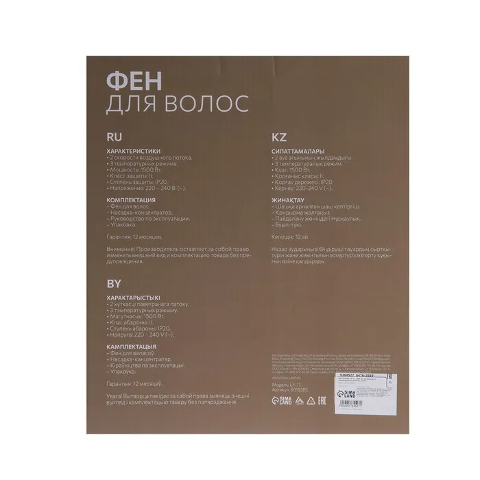 Фен LuazON LF-17 поможет высушить волосы и создать профессиональную укладку у вас дома. Он идеально подойдёт для создания естественной причёски в домашних условиях.