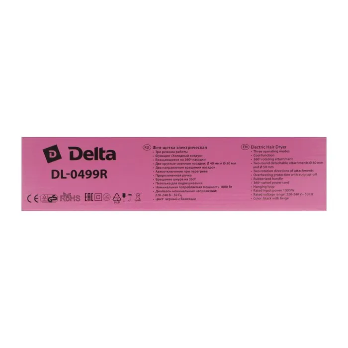 Фен-щетка DELTA DL-0499R, 1000 Вт, 3 режима, 2 насадки, чёрная — Характеристики