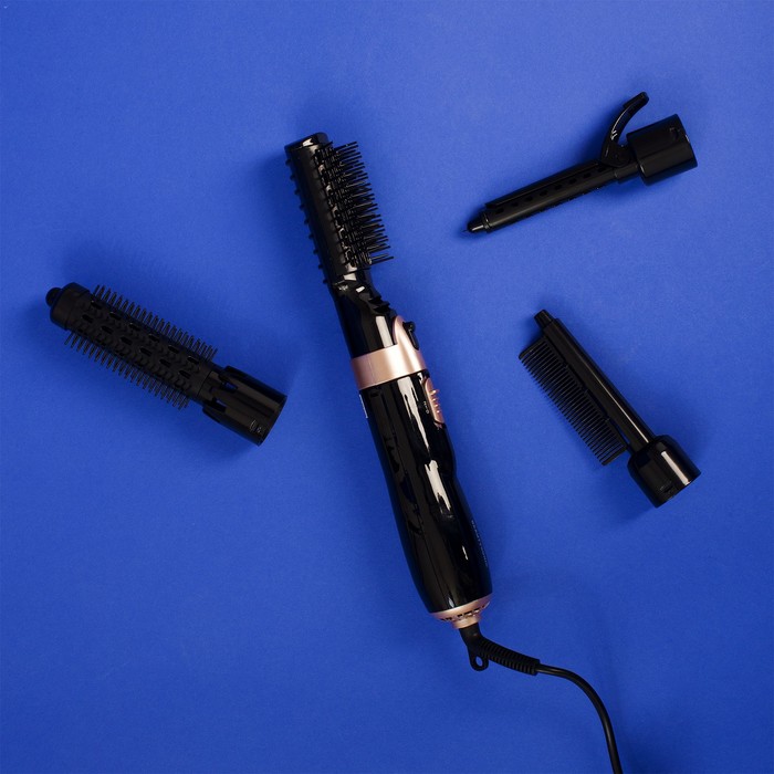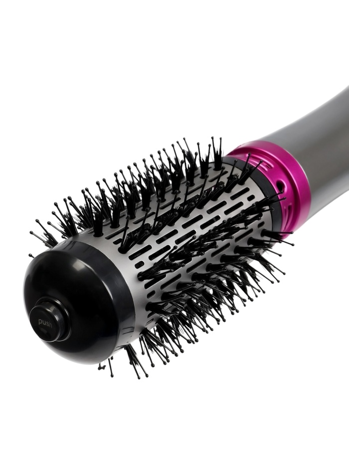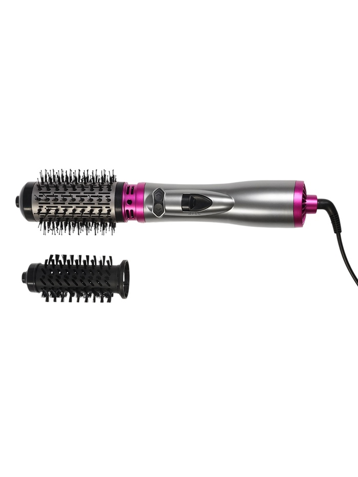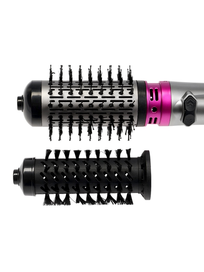 В комплекте есть несколько насадок. Насадка-брашинг диаметром 56 мм подойдёт для завивки кончиков и создания объёмных укладок, насадка диаметром 36 мм поможет сделать более упругие завитки. В зависимости от толщины пряди завиток получится более очерченным или, наоборот, более плавным и легким.
