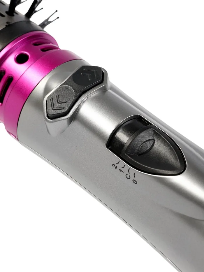 С помощью панели управления на ручке устройства вы можете регулировать температуру и скорость воздушного потока, а также выбирать направление вращения насадок. У фена есть 3 режима: