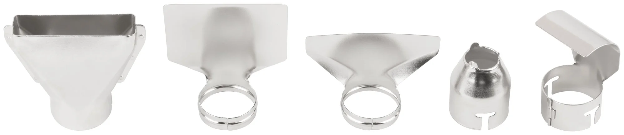 Преимущества модели HG-2011 включают защиту от перегрева благодаря термореле и возможность точной настройки благодаря клавишному переключателю. В комплект входят 5 сменных насадок, расширяющих функционал устройства.