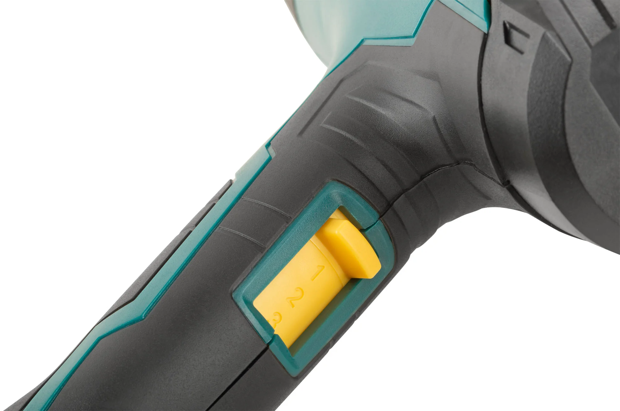 К преимуществам модели HG-2012 относится продуманная конструкция с установочным диаметром насадок 34 мм и возможностью работы при воздушном потоке до 500 л/мин. Это делает его отличным выбором для интенсивной эксплуатации.