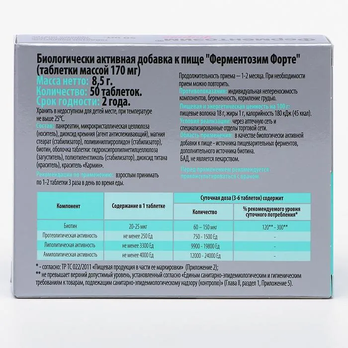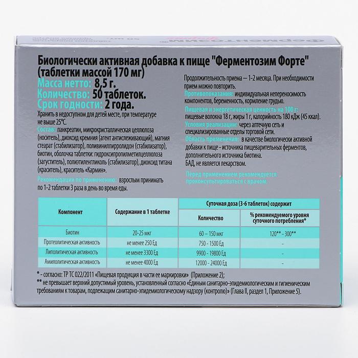 Ферментозим форте, нормализация пищеварения, 50 таблеток — Характеристики