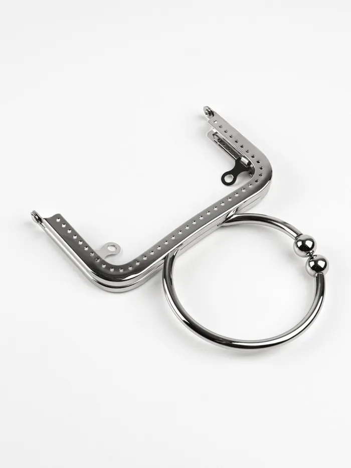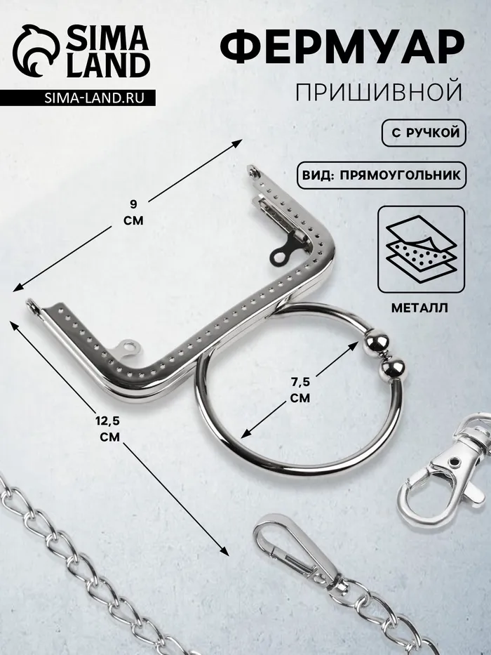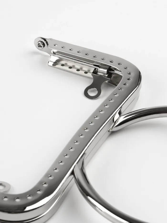 Функциональный и стильный элемент для швейных проектов — пришивной фермуар с ручкой. Прямоугольная форма и серебристый цвет делают его универсальным решением для сумок, клатчей и других текстильных аксессуаров. Компактные размеры и удобная ручка обеспечивают комфорт в использовании и завершают образ.