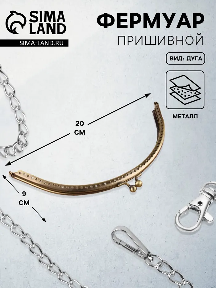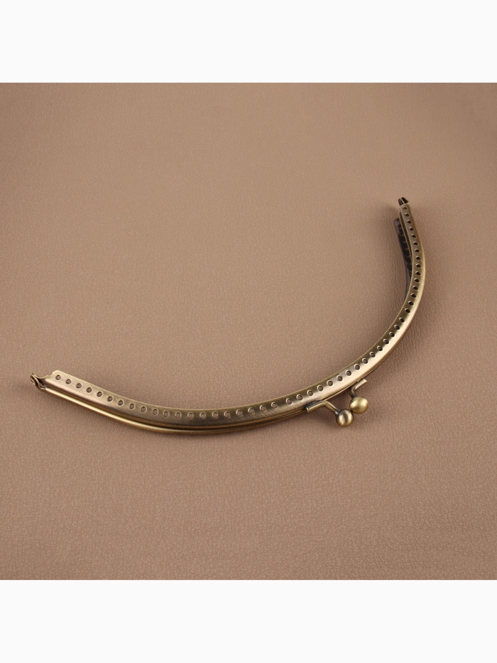 Создайте тёплый и насыщенный акцент в своём швейном проекте с этим вместительным пришивным фермуаром. Форма дуги и бронзовый цвет придают изделию особый шарм — подходит как для классических, так и для стилизованных сумок, клатчей и текстильных аксессуаров.