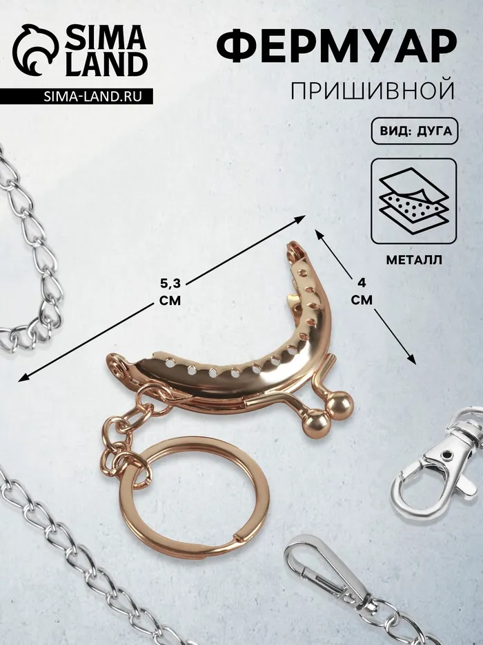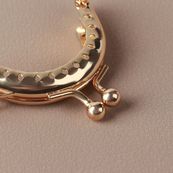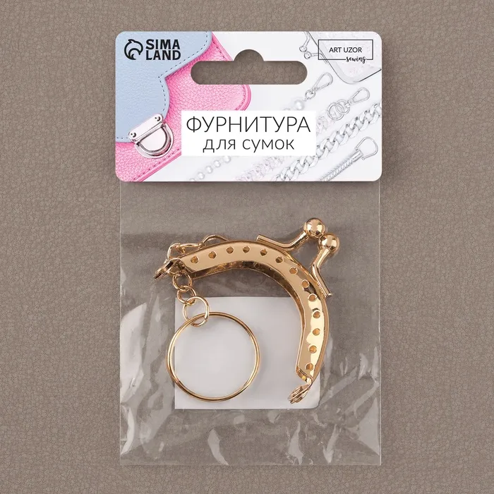 Золотистый полукруглый фермуар с кольцом от бренда «Арт Узор» — изящный акцент для авторских аксессуаров. Компактный размер 5.3×4 см делает его идеальным выбором для изысканных кошельков, клатчей и декоративных элементов.