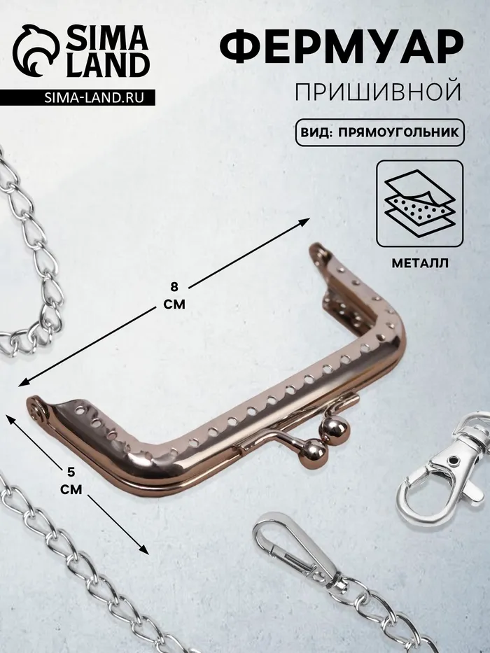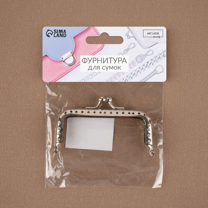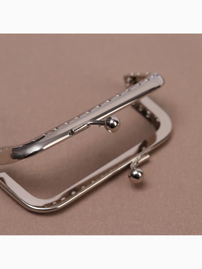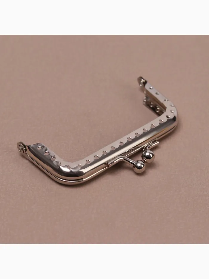 Серебристая пришивная застёжка прямоугольной формы — универсальный акцент для кожаных аксессуаров и текстильных изделий. Металлическая фурнитура с нейтральным дизайном органично женственные клатчи. Благодаря компактности (8×5 см) сохраняет баланс между функциональностью и эстетикой.