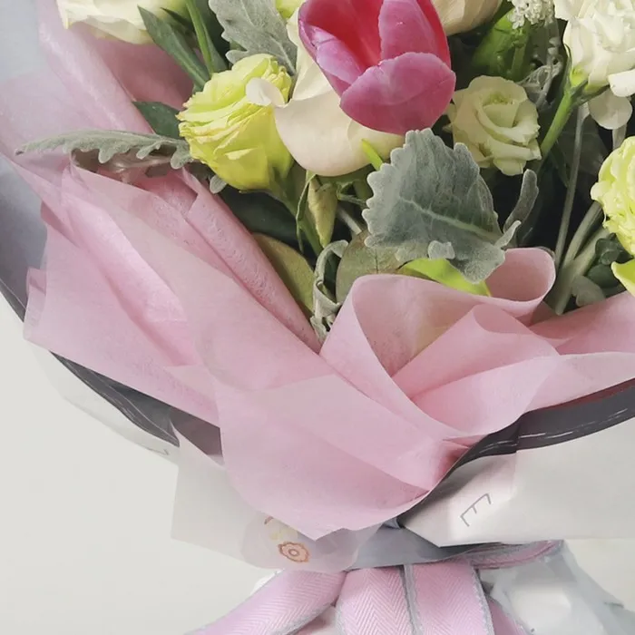 Фетр однотонный . Флористический фетр на бумажной основе чаще всего используют флористы и декораторы. Главной особенностью фетра является его водонепроницаемость, то есть, вы можете поставить в вазу с водой букет оформленный флористическим фетром и не бояться окрашивания воды или размокания самого материала.