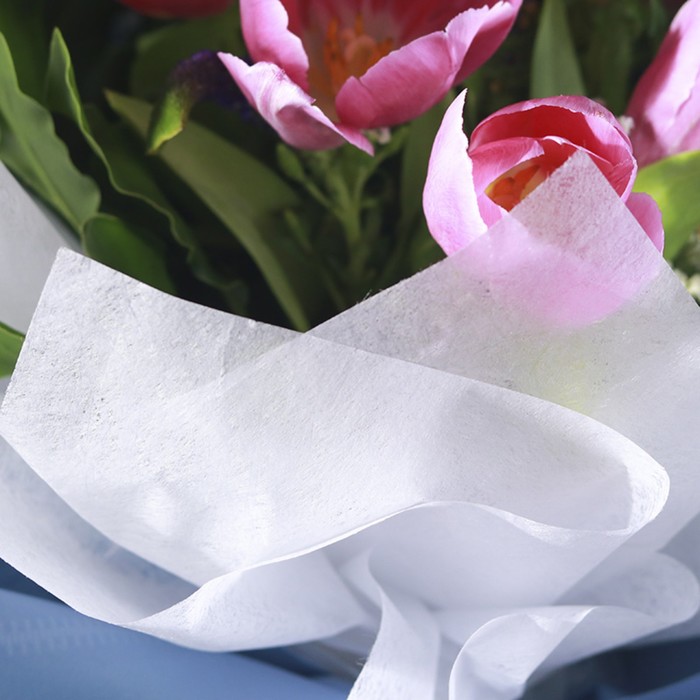 Фетр однотонный . Флористический фетр на бумажной основе чаще всего используют флористы и декораторы. Главной особенностью фетра является его водонепроницаемость, то есть, вы можете поставить в вазу с водой букет оформленный флористическим фетром и не бояться окрашивания воды или размокания самого материала.
