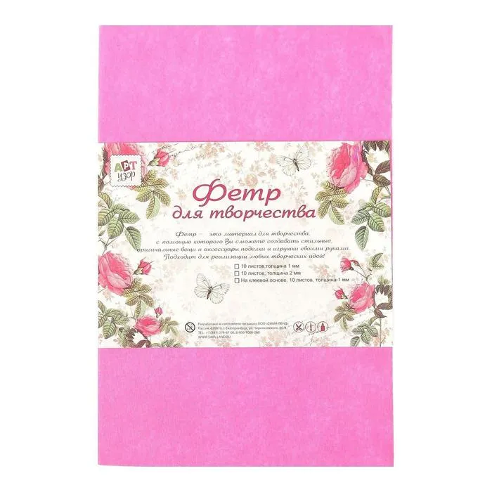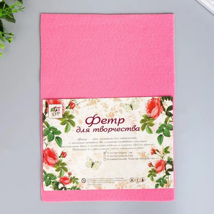 Фетр «Ярко-розовый», 1 мм, (набор 10 листов), формат А4 — Характеристики