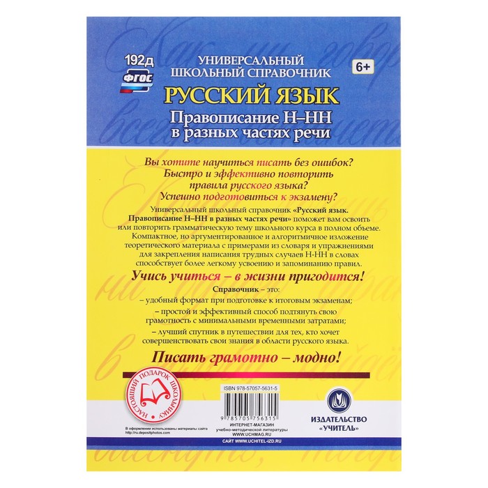 Универсальный школьный справочник представляет собой компактное изложение теоретического материала об орфограмме Н-НН в разных частях речи, предложенное в виде вопросно-ответной формы для всех случаев правописания данной орфограммы в школьном курсе русского языка, с алгоритмами, упражнениями, проверочными тестами и инструкцией к самопроверке, необходимыми словарями. Такая подробная форма описания достаточно трудной орфограммы, наглядно-иллюстративное сопровождение примерами и обучающими заданиями в виде тренажеров поможет обучающимся оперативно обратиться к справочному материалу непосредственно в книге, уточнить любую сложную ситуацию с ее применением, быстро и эффективно систематизировать имеющиеся знания, повторить правила русского языка и подготовиться к проверочным работам, требующим знаний и умений находить орфограмму Н-НН в морфемах, в частях речи, различать написание Н и НН, попрактиковаться самостоятельно или в сотрудничестве с педагогом в применении этой орфограммы, сверить полученные результаты с ответами. Справочник предназначен школьникам и студентам, учителям и репетиторам. Он окажется незаменимым путеводителем тем, кто заинтересован в высоком уровне знаний и умений по русскому языку, самостоятельно готовится к урокам, контрольным и проверочным работам, экзаменам.