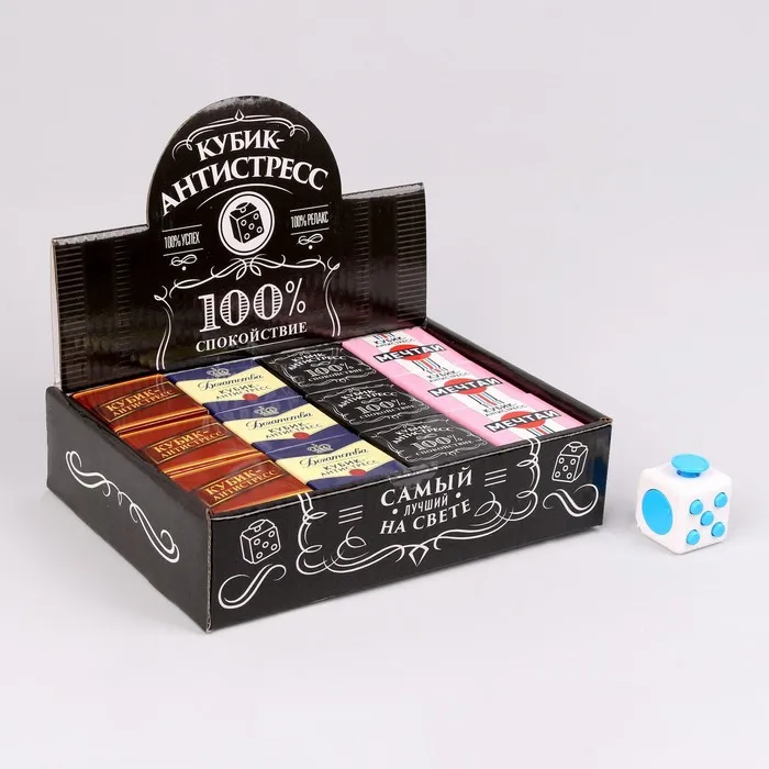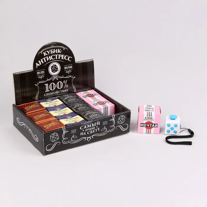Фиджет кубик антистресс «100% спокойствие», МИКС, в шоубоксе — Характеристики