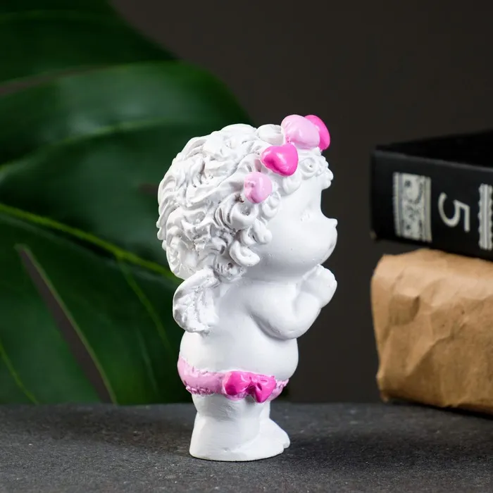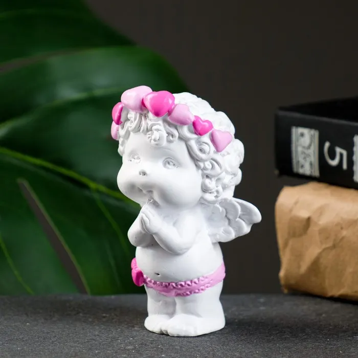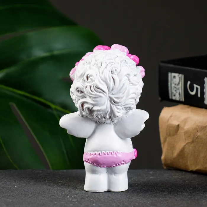 Сувенир полистоун "Ангел в розовом веночке с букетиком" МИКС 6,8х2,8х3 см