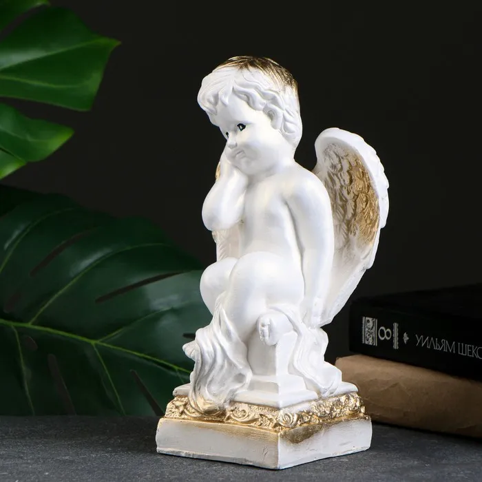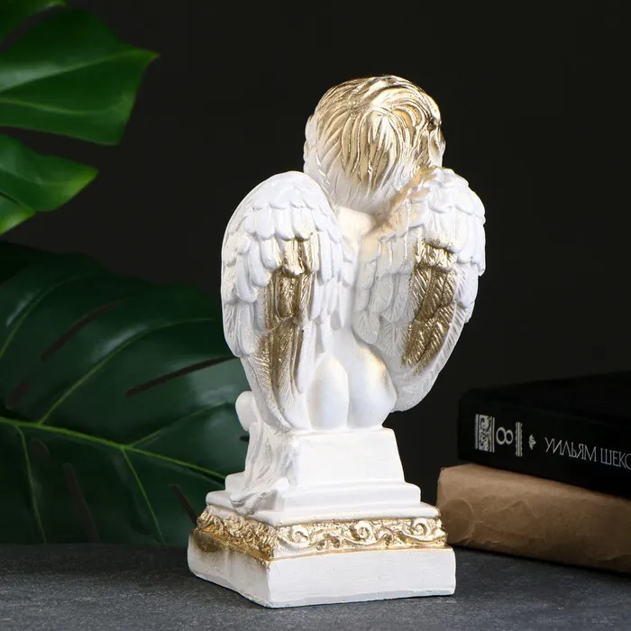 Фигура "Ангел молящийся большой" белое золото 53х30х20см