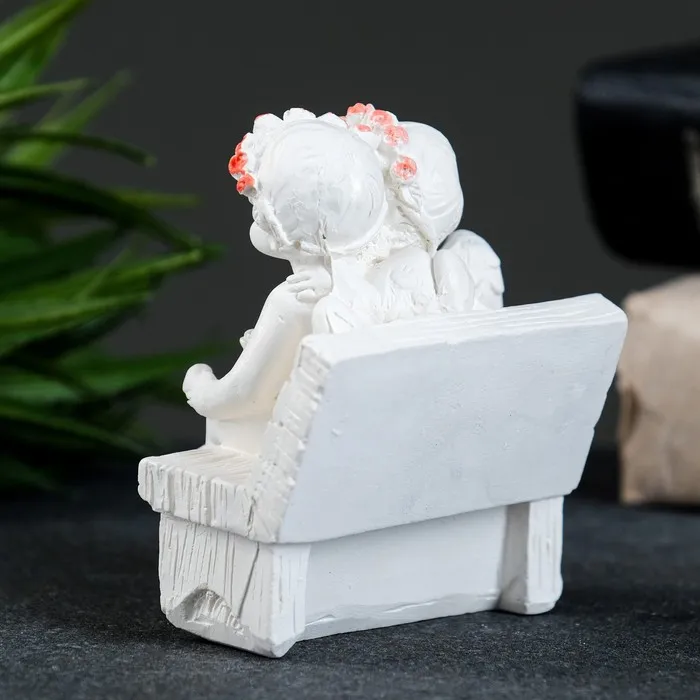 Фигура "Ангел на скамейке" перламутр, 8х7х5см