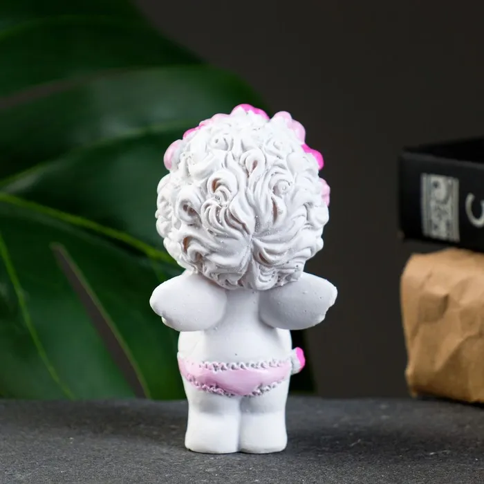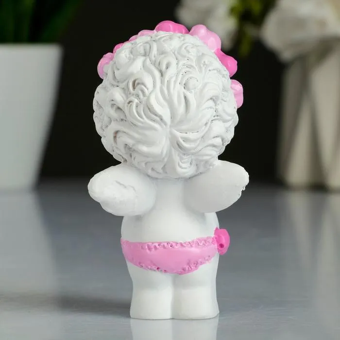 Сувенир полистоун "Ангел в розовом веночке с букетиком" МИКС 6,8х2,8х3 см