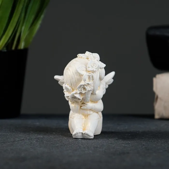 Сувенир полистоун "Ангел в венке из роз в молитве" МИКС 6х4х2,6 см