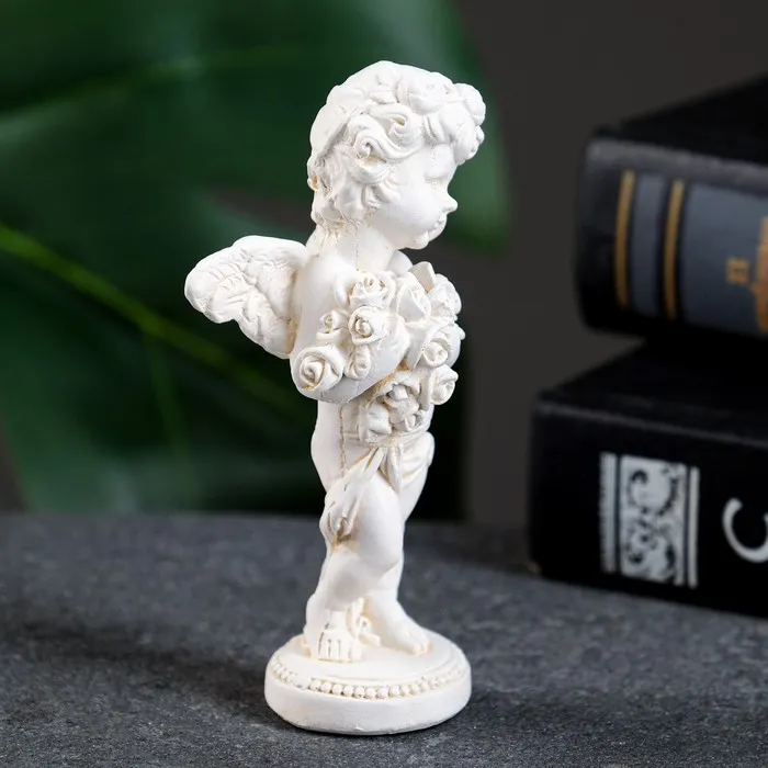 Фигура "Ангелочек с букетом" позолота, 10х4х4см