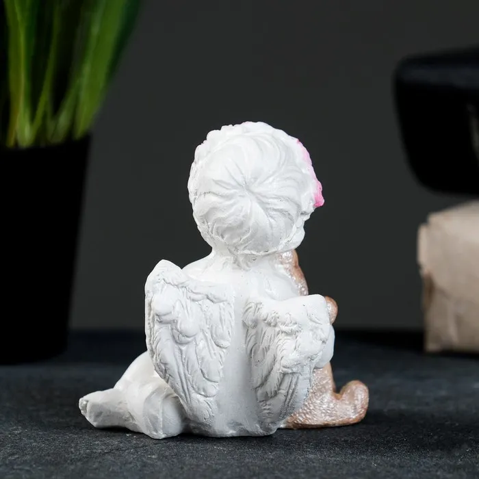 Фигура "Ангелочек с мишкой сидит" перламутр, 7х7х5см