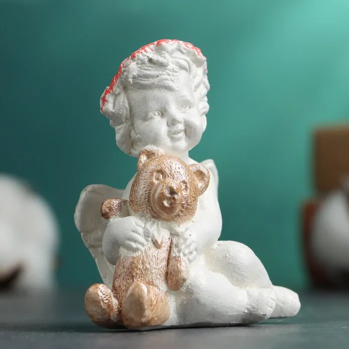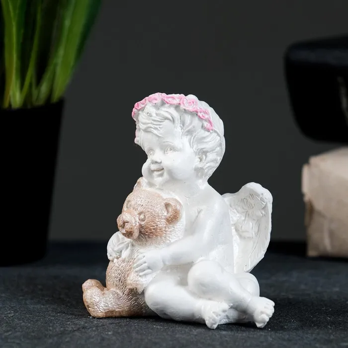 Фигура "Ангелочек с мишкой сидит" перламутр, 7х7х5см — Характеристики