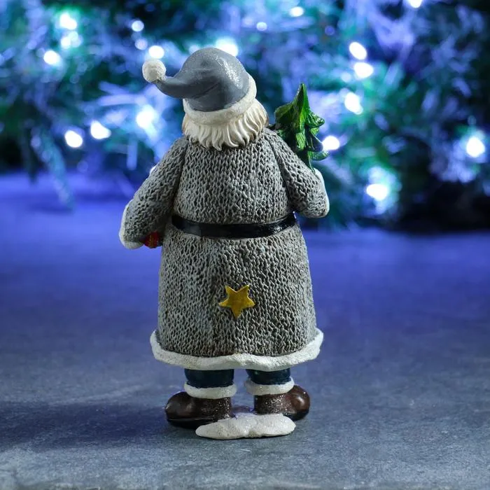 Фигура "Дед Мороз с елкой и подарком" в белом 10х13х22см