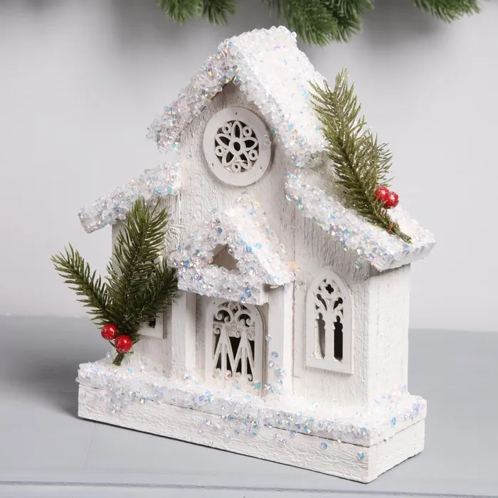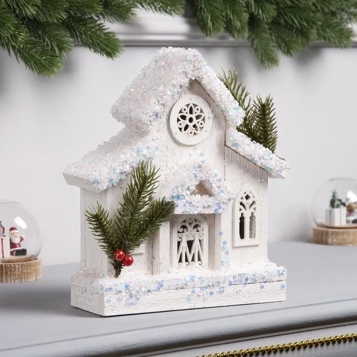 Фигура деревянная «Домик белый», 24×20х7 см, 5 LED, батарейки AAx2 (не в комплекте), свечение теплое белое — Характеристики