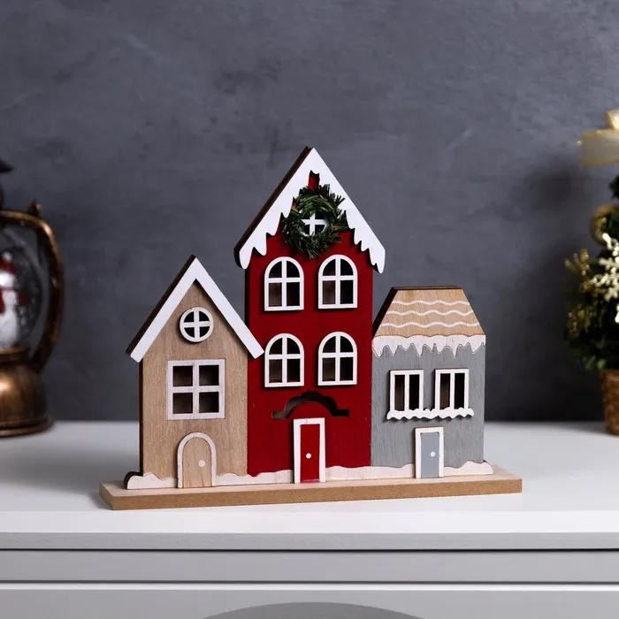 Фигура деревянная "Городок", 24х5х21 см, 6 LED, батарейки CR2032x1 (в комплекте), свечение тёплое белое — Характеристики
