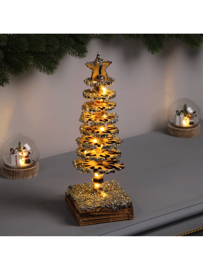 Фигура деревянная «Ёлочка», 30×10×10 см, 35 LED, от батареек AAx2, свечение тёплое белое — Характеристики