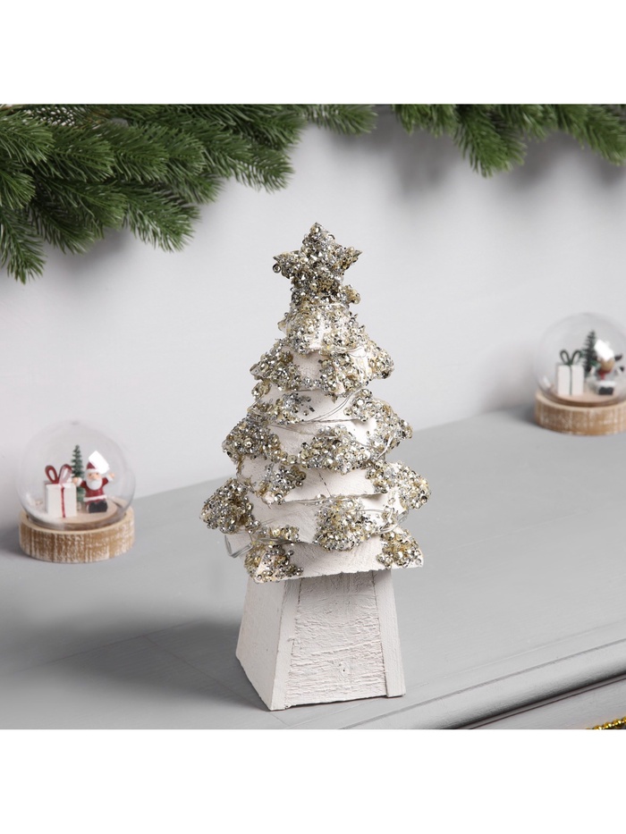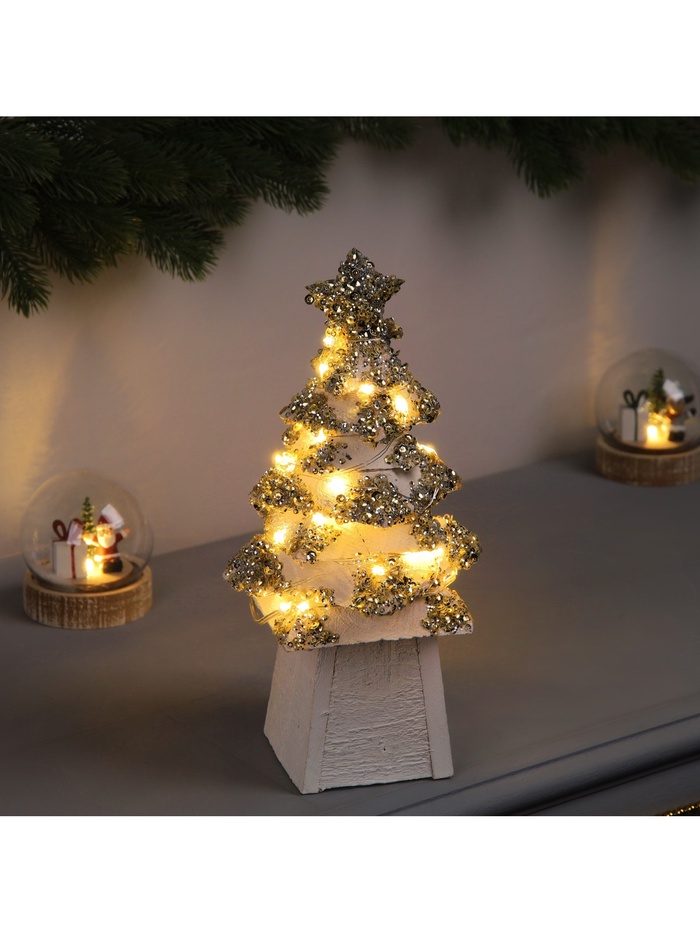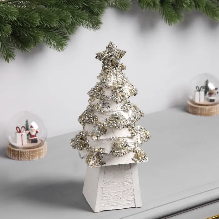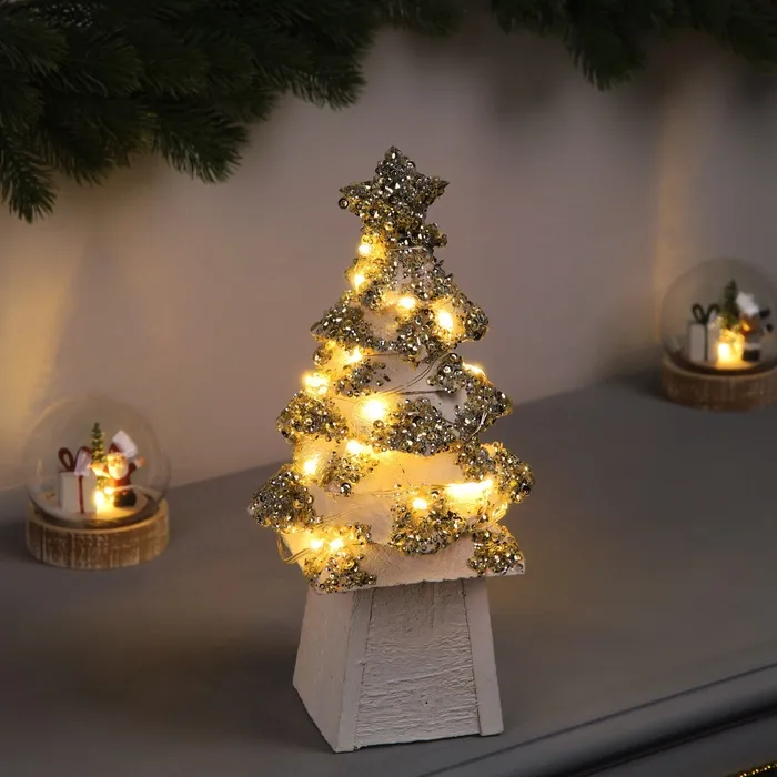 Фигура деревянная «Ёлочка белая», 27×14×14 см, 35 LED, от батареек AAx2, свечение тёплое белое — Характеристики