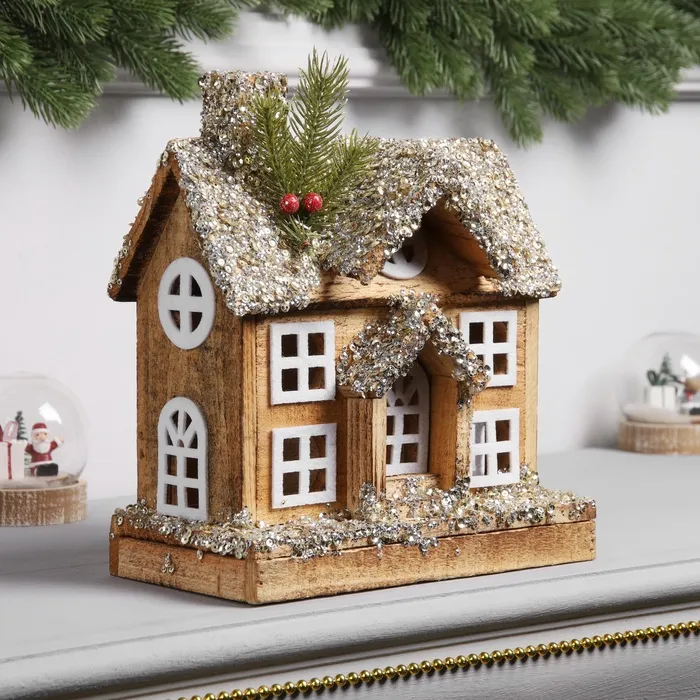 Фигура деревянная «Изба», 26×23х12 см, 5 LED, батарейки AAx2 (не в комплекте), свечение теплое белое — Характеристики
