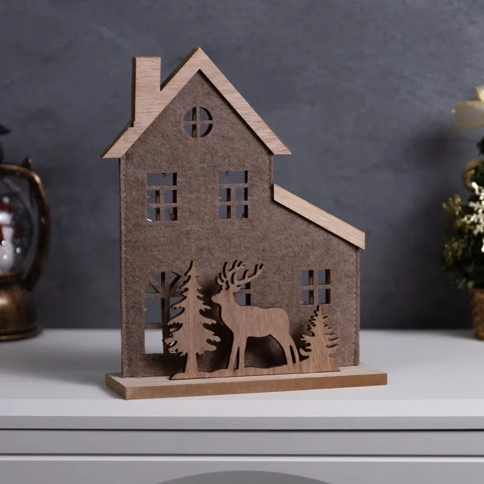 Фигура деревянная «Изба с оленями», 20×6х25 см, 5 LED, батарейки CR2032×1 (в комплекте), свечение теплое белое — Характеристики