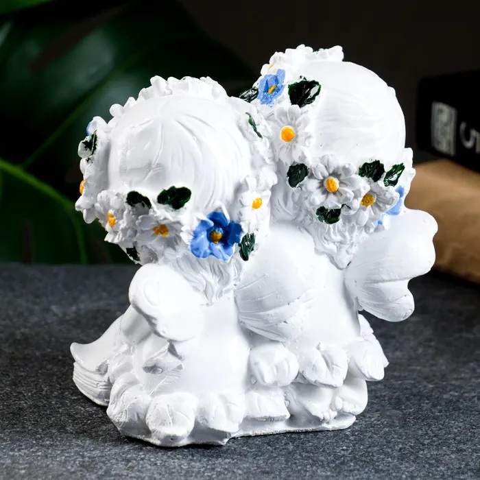 Фигурка полистоун «Ангелочки в розовых веночках с сердцем из роз», 10×8.5×5.5 см